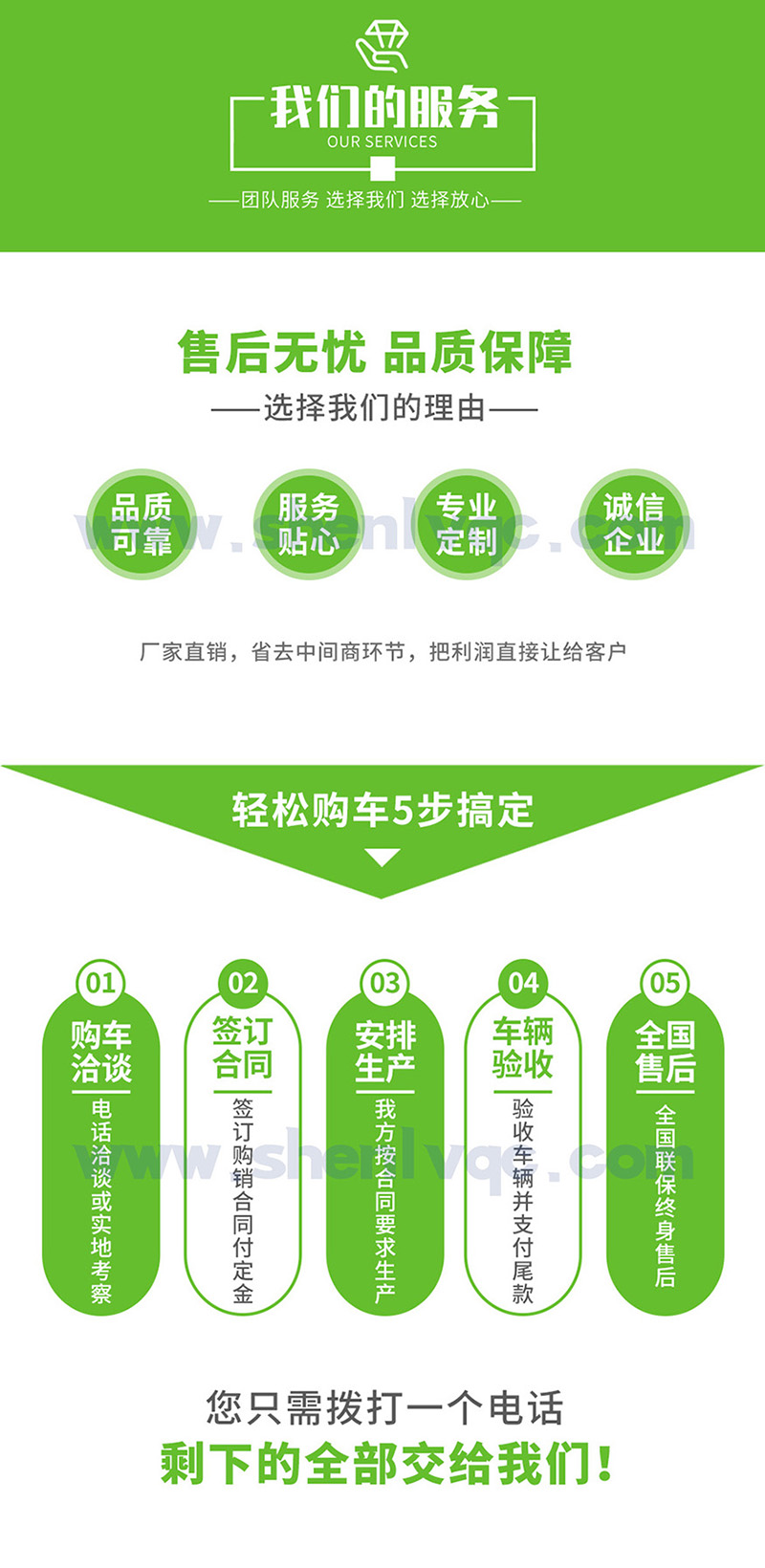 ·創(chuàng)優(yōu)質(zhì)服務(wù)企業(yè); 造用戶(hù)滿(mǎn)意產(chǎn)品; 樹(shù)國(guó)內(nèi)知名品牌!公司堅(jiān)持以“質(zhì)量求生存、信譽(yù)求發(fā)展、科技創(chuàng)新路、服務(wù)創(chuàng)品牌”的經(jīng)營(yíng)理念,以“誠(chéng)信、務(wù)實(shí)、創(chuàng)新、進(jìn)取”為企業(yè)宗旨,不斷提升自身產(chǎn)品質(zhì)量,開(kāi)發(fā)適應(yīng)市場(chǎng)需求物美價(jià)廉的多功能專(zhuān)用汽車(chē)! 我們將謁誠(chéng)為您提供更好、更快、更優(yōu)質(zhì)的服務(wù)!