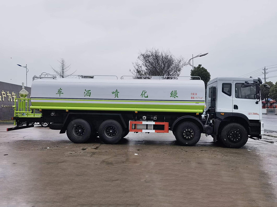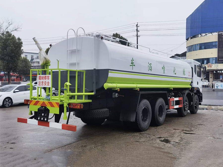 上裝配置簡要介紹:罐體采用標(biāo)準(zhǔn)Q235碳鋼制作,罐體自動(dòng)焊,裝水25噸,配大功率專用灑水車,可自吸自排,前沖后灑,側(cè)噴,高位花灑,主管道加粗,大通徑球閥,直通球閥式消防接口,帶后工作平臺(tái),沖孔平臺(tái),帶高炮。(可選裝大平臺(tái),可裝30米霧炮降塵)。環(huán)保,免征齊全。